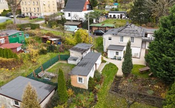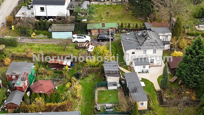 Dom jedno piętrowy o powierzchni użytkowej około 120 m2 podzielony jest obecnie na dwa mieszkania posiadające osobne niezależne wejścia.