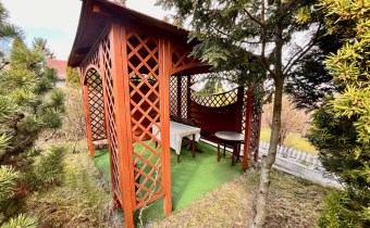 Wokół nieruchomości jest sporo wypielęgnowanej zieleni, efektownych nasadzeń oraz drobnej architektury ogrodowej, łącznie z nową altanką, oferującą zacienienie w upalne dni.