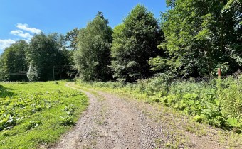 Parcela o wielkości 2000 m2 w kształcie prostokąta, położona jest na pagórku o lekkim nachyleniu w stronę pogórza . Wytyczona przez geodetę przestrzeń tworzy idealne miejsce dla osób ceniących spokój i kontakt z naturą.