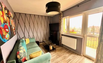 - jasnego salonu z wyjściem na spory balkon,