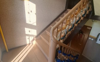 Kamienica z nową elewacją i dachem, klatka schodowa również po remoncie z nową instalacją elektryczną i gazową, zabezpieczona domofonem.